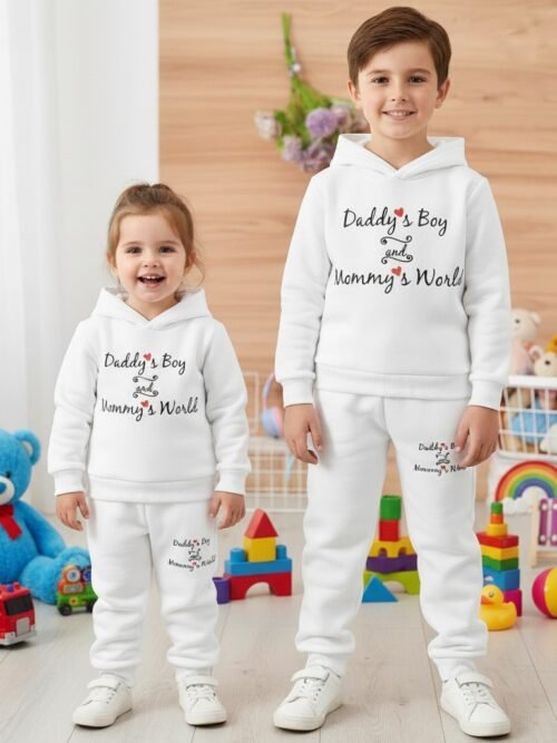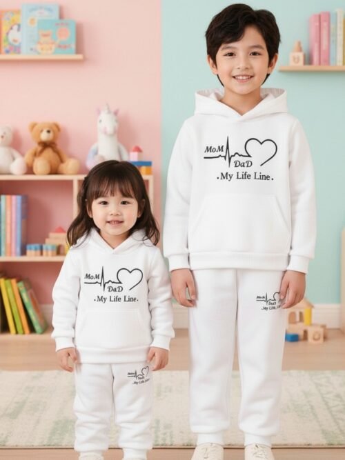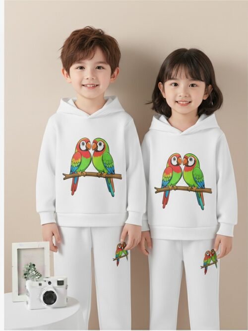 আধুনিক ডিজাইন এবং উষ্ণতার নিশ্চয়তাসহ শিশুর হুডি সেট।
