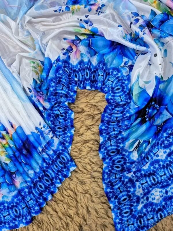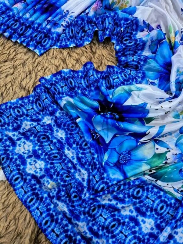 – সফট ব্লু ও হোয়াইট গ্রেডিয়েন্ট বেইজে চোখ জুড়ানো ডিজিটাল ফুল প্রিন্টের কাজ।