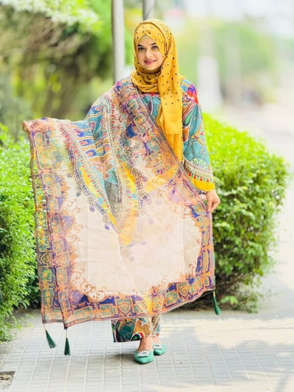 পোশাকের ধরন: ডিজিটাল প্রিন্ট রেডিমেড থ্রি পিস