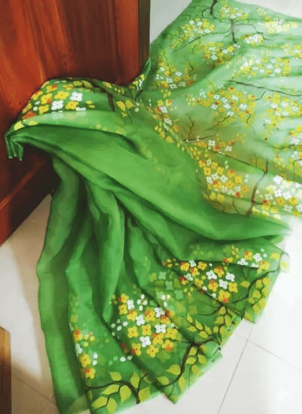 সংক্ষিপ্ত বিবরণ: এই শাড়িটি তৈরি হয়েছে উচ্চমানের হাফ সিল্ক মেটেরিয়ালে। এর প্রধান সৌন্দর্য হলো সম্পূর্ণ শাড়িতে করা হাত প্রিন্ট তুলির কাজ। এটি ঐতিহ্যবাহী ও আধুনিক স্টাইলের মিশ্রণ, যা যেকোনো উৎসবে আপনার সাজকে পরিপূর্ণতা দেবে। শাড়িটি ১২ হাত লম্বা।