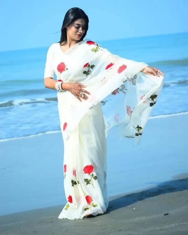 এই শাড়িটি হলো আকর্ষণীয় মনোমুগ্ধকর ডিজাইন-এর এক অসাধারণ উদাহরণ। চাঁদেরী সিল্ক-এর উজ্জ্বল রং ও নান্দনিক নকশার এই শাড়িটি প্রতিদিনের ব্যবহার থেকে শুরু করে যেকোনো উৎসব বা অনুষ্ঠানে আপনাকে করে তুলবে দৃষ্টি নন্দন। আকর্ষণীয় ডিজাইনের এই শাড়িগুলো আপনাকে দেবে স্নিগ্ধ ও আভিজাত্যের মিশ্রণ।