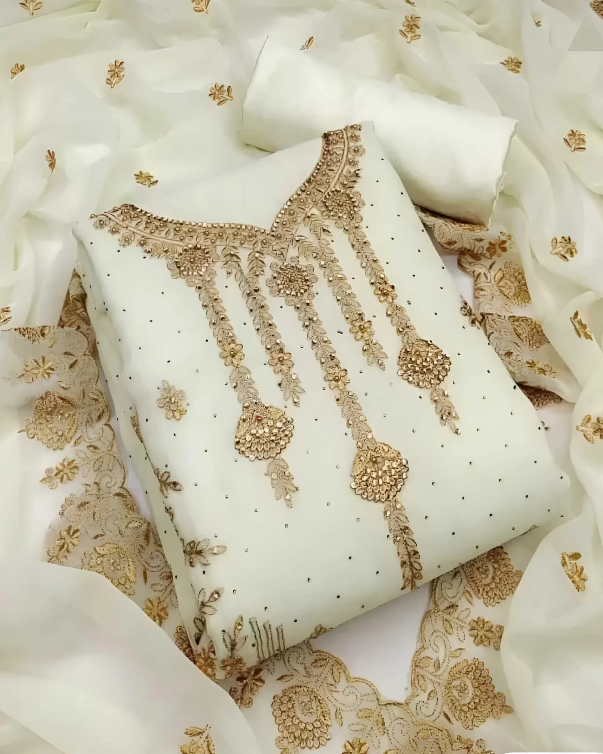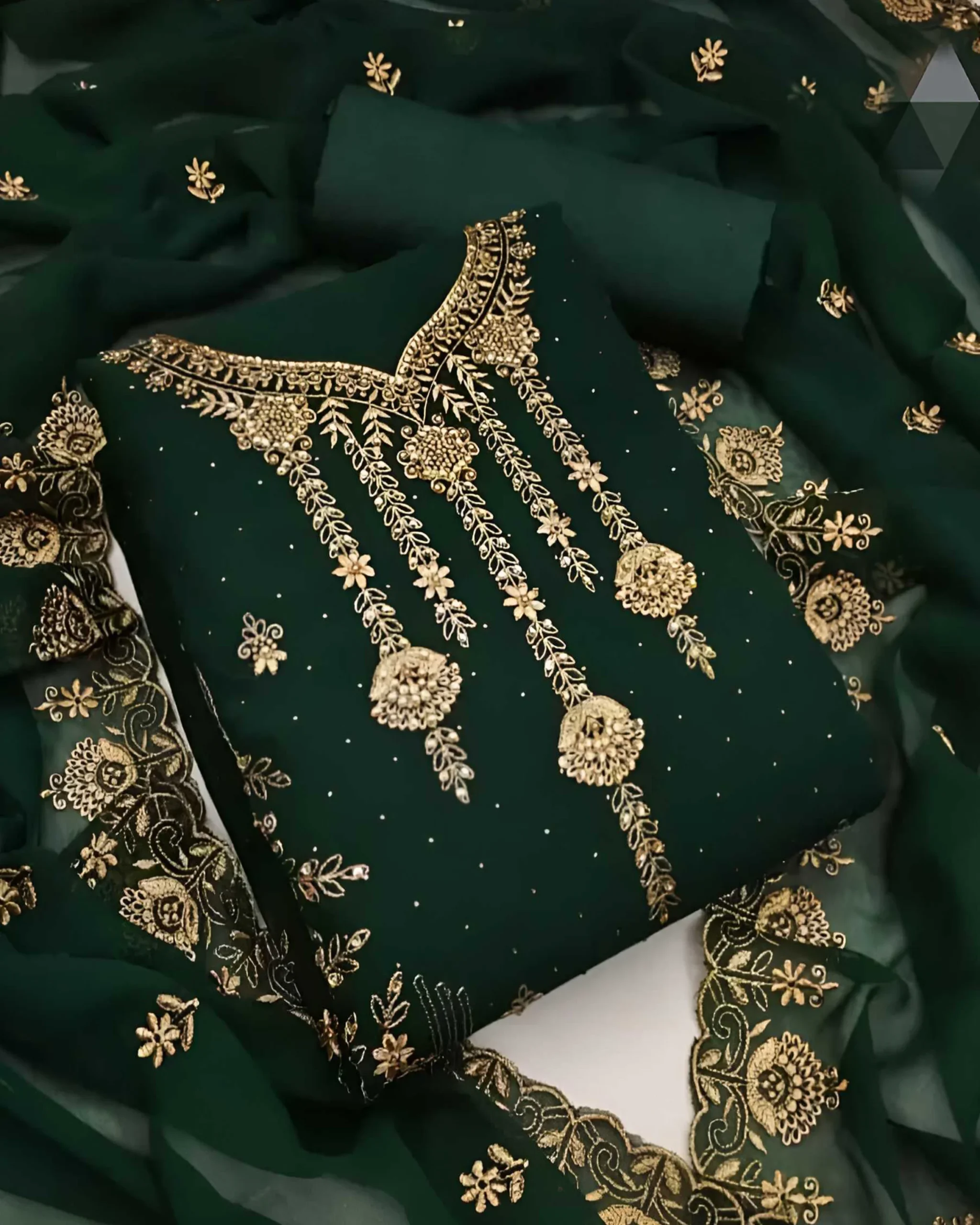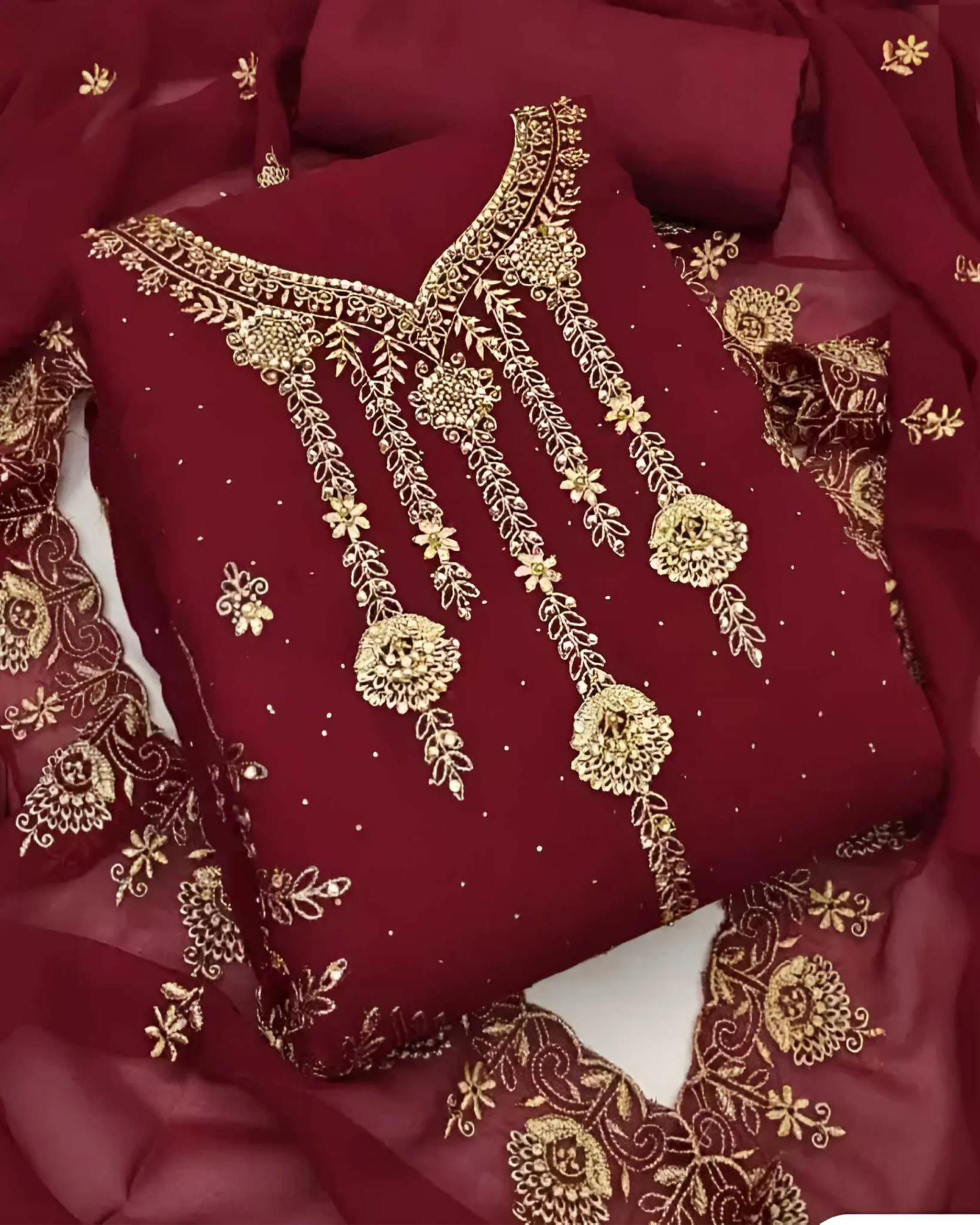 আকর্ষণীয় এমব্রয়ডারি জর্জেট থ্রি পিস