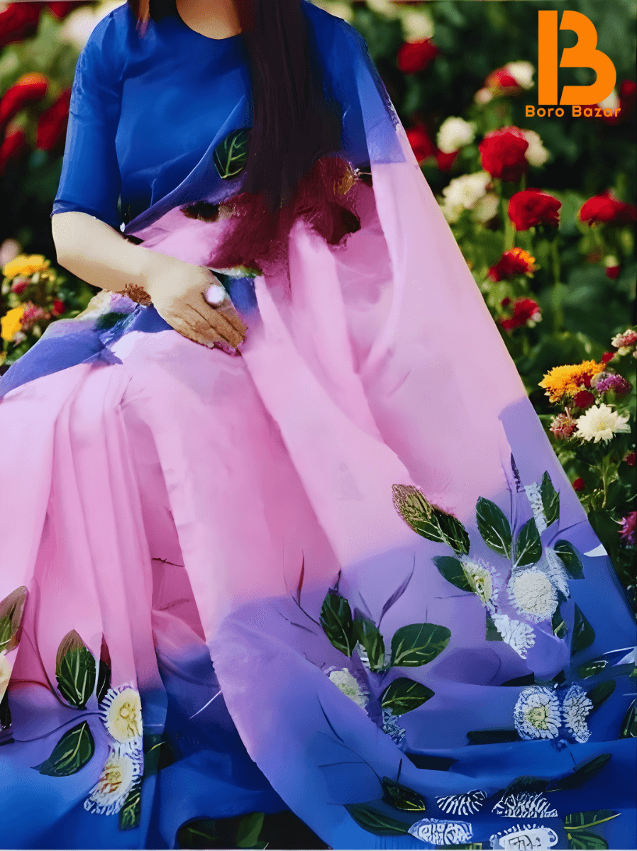 হাফসিল্ক শাড়ীতে হ্যান্ডপ্রিন্ট তুলির কাজ করা